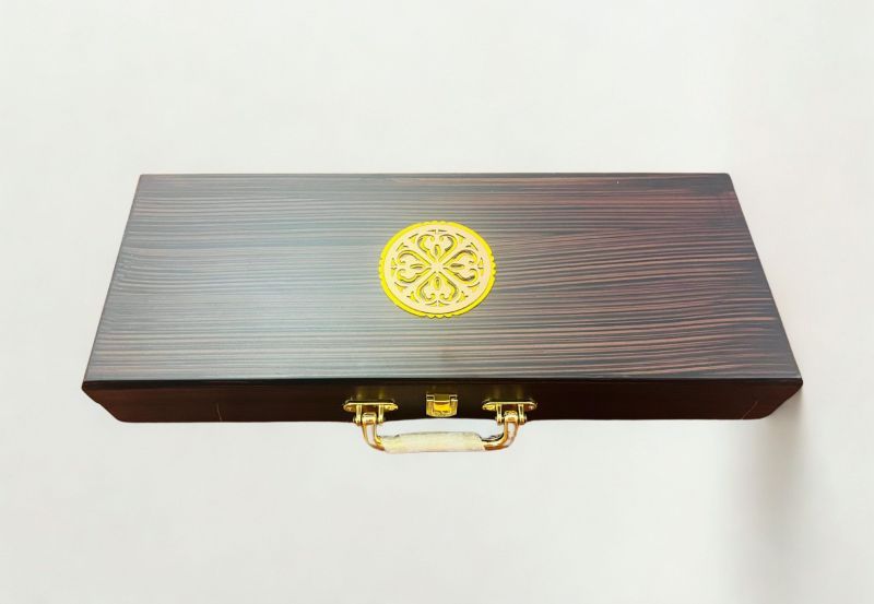 This beautifully crafted wooden box contains four salsa jars and twenty cavity, each jars intricate with acrylic laser-cut designs. The jars are accented with saten for a touch of luxury. The top of the box also features a matching acrylic laser-cut design, adding a stylish and cohesive finish.